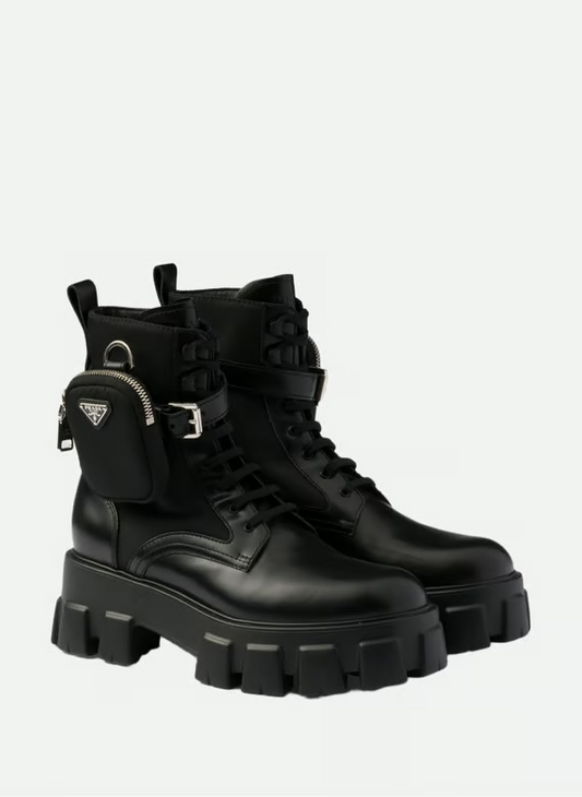 Combat boots monolith en cuir et re-nylon avec poc | Noir