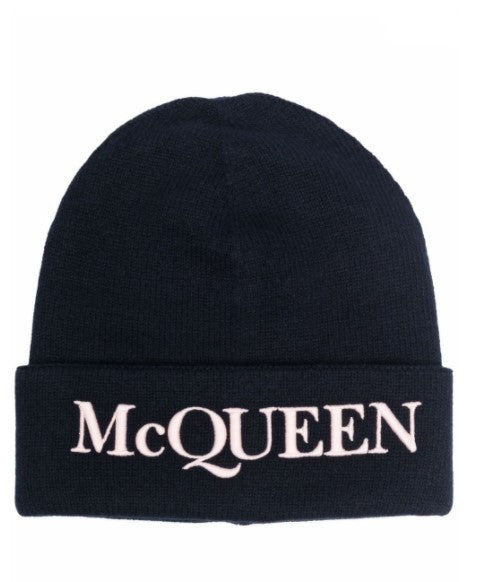 Mesh design, embroidered logo, rolled edge. Blue color.